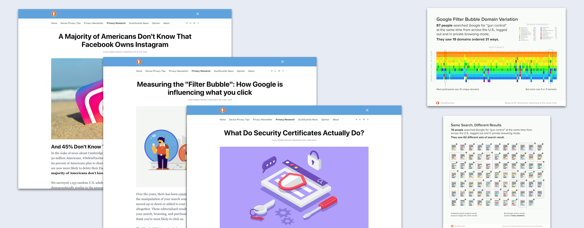 At DuckDuckGo, by contrast, ethical design is simply ... design. This leaves us with one clear path. For us, this is possible because our teams work together towards one overarching, ethically-focused mission: We’re setting the new standard of trust online, empowering people to take control of their information. In other words, the responsibility of making ethical decisions isn't delegated to one or two roles, it's in the fabric of how we work across all roles. It's simply a natural byproduct of how we operate. This establishes a common direction and trust, so there’s no question who we’re building for and why.